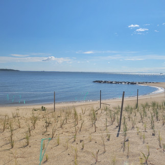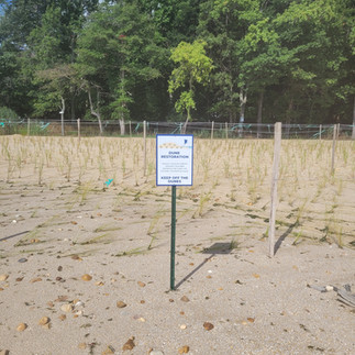 Vegetated dunes help dissipate wave energy and allow for marsh/beach migration as sea levels rise. The design created a wide beach and dunes in the location of the most severe beach erosion, providing short and long-term protection for Honeysuckle Drive and the shoreline. Salt marsh hay habitat restoration and dune habitat creation are major benefits of this project.